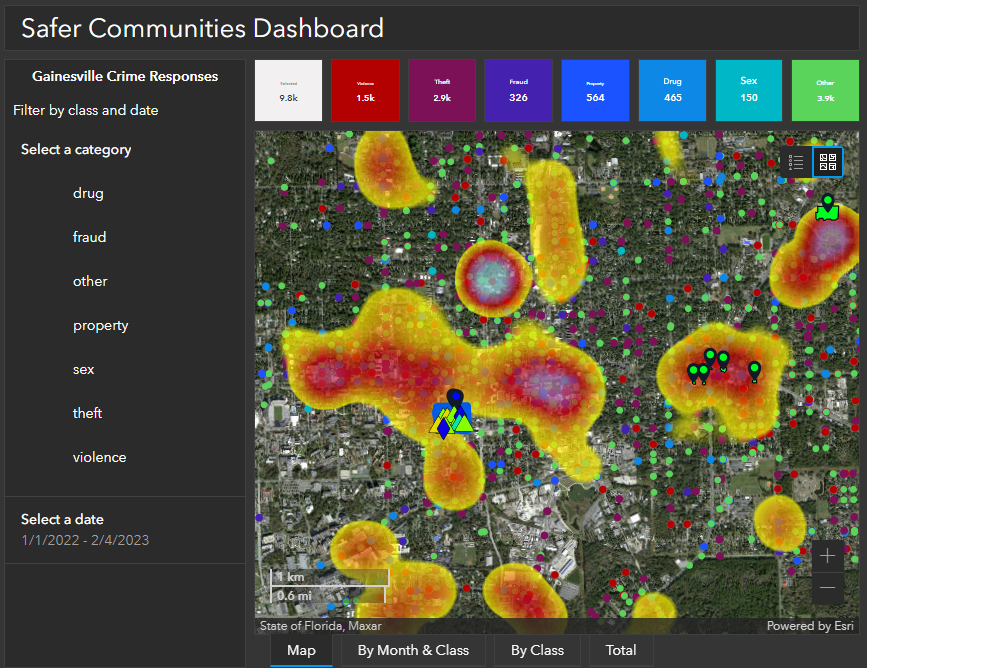 In collaboration with the Gainesville Police Department (GPD), University of Florida Police Department (UFPD), and Ersi inc., the Loss Prevention Research Council (LPRC) created an up-to-date crime incident map for the city to launch the SaferPlaces research initiative. Calls for service data are piped into ArcGIS online and visualized as a heat map along with LPRC StoreLab locations and field assets.
